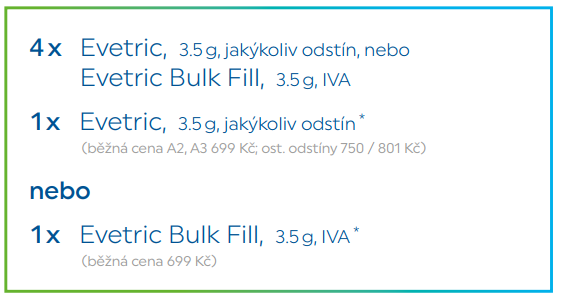 System Kit obsahuje: 4 x 3.5 g v barvách 2x A2 a 2x A3 a 6 g Evetric Bond.