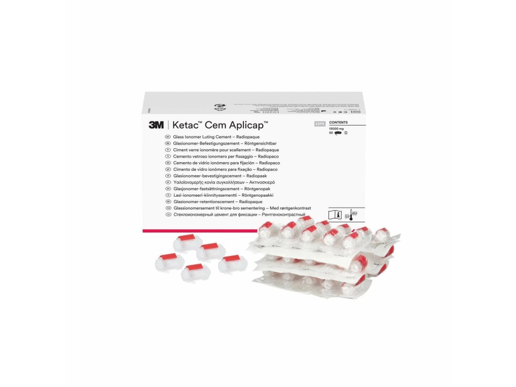 Skloionomerní upevňovací cement v systému Aplicap pro definitivní cementování pro inleje, onleje, korunky a můstky z kovu nebo metalokeramiky nebo keramických systémů s jádrem z aluminia nebo ze zirkonia, permanentní cementování endodontických čepů nebo ortodontických zámků vyrobených z kovu, jako podložka kavity. Uvolňování fluoridů, radiopákní, systém Aplicap nabízí jednoduché použití, snadnou aplikaci, kvalitu a spolehlivost. Obsah: 50 kapslí.