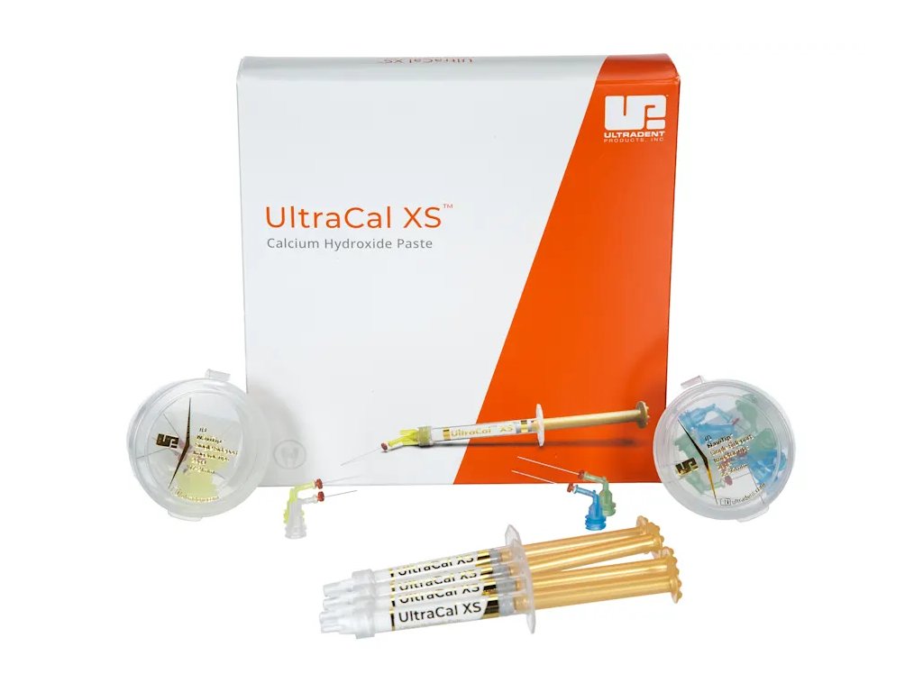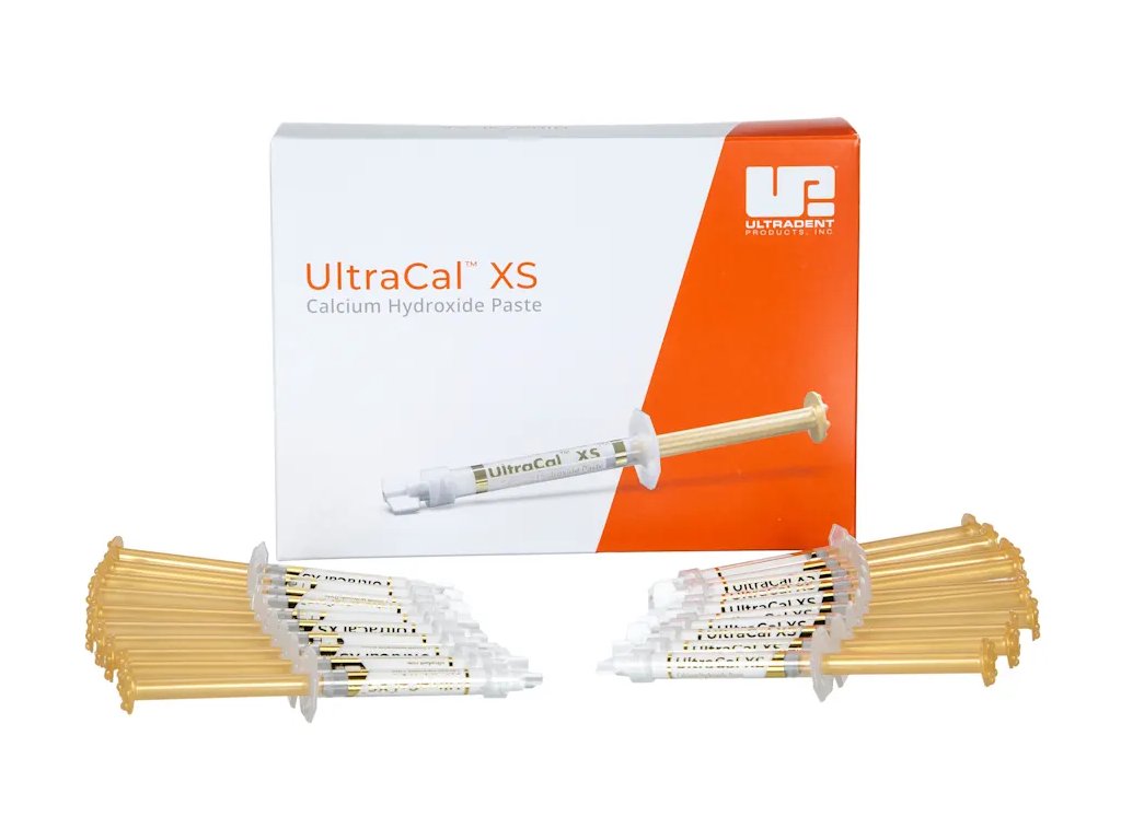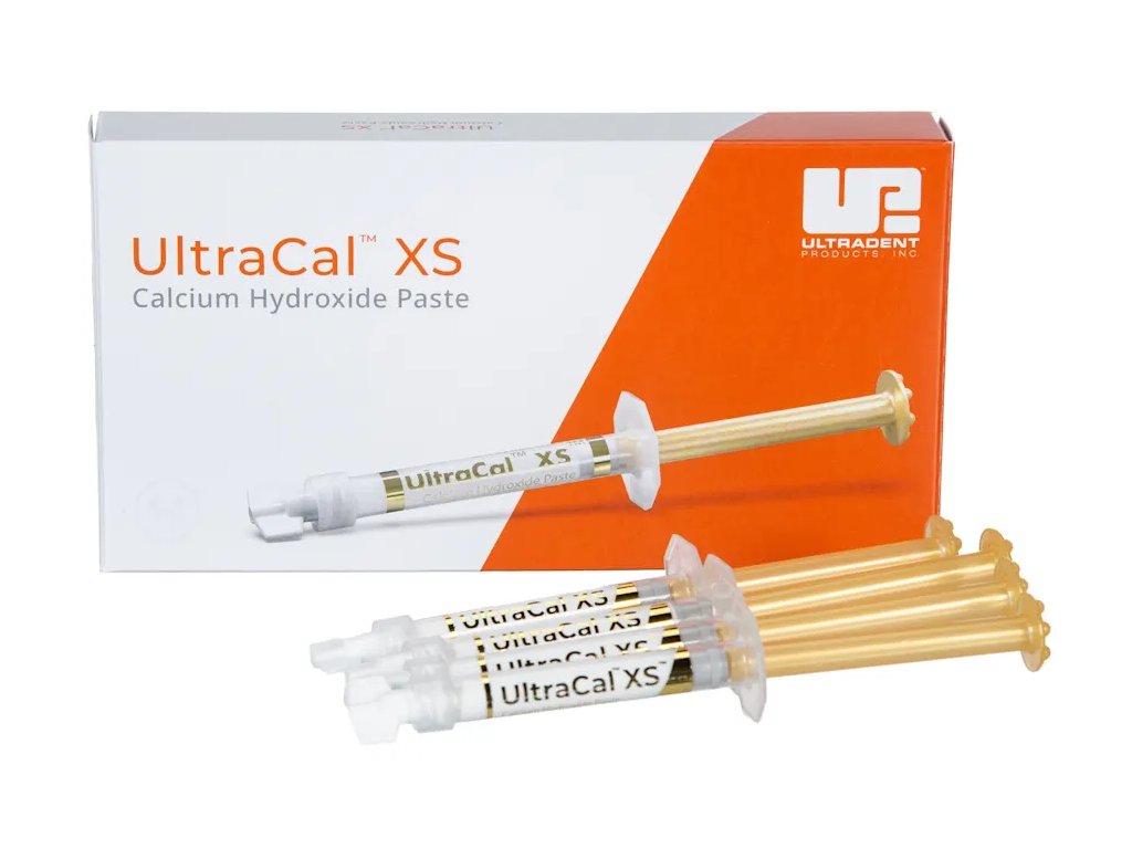 Ultracal XS je vysoce kvalitní radiopakní pasta na bázi hydroxidu vápenatého (35 % Ca(OH)₂ ve vodné bázi), určená pro dočasné zaplnění kořenových kanálků při endodontickém ošetření. Díky hodnotě pH přibližně 12,5 vytváří silně alkalické prostředí, které přispívá k eliminaci reziduální mikroflóry a podporuje reparaci tvrdých tkání.
